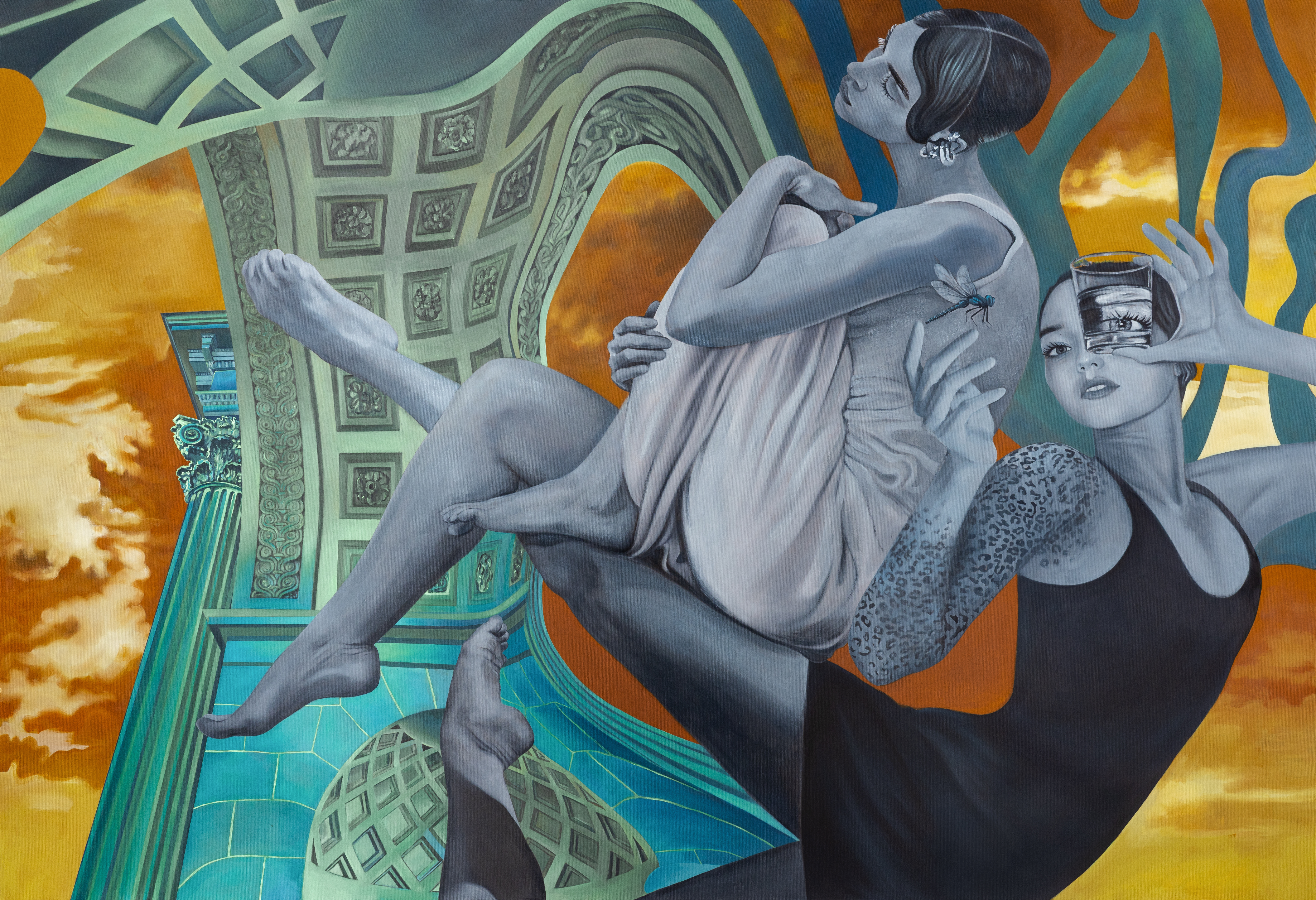 “Metaphysical Duet: a cat in the reflection of a lunar body and the golden gloom of day”